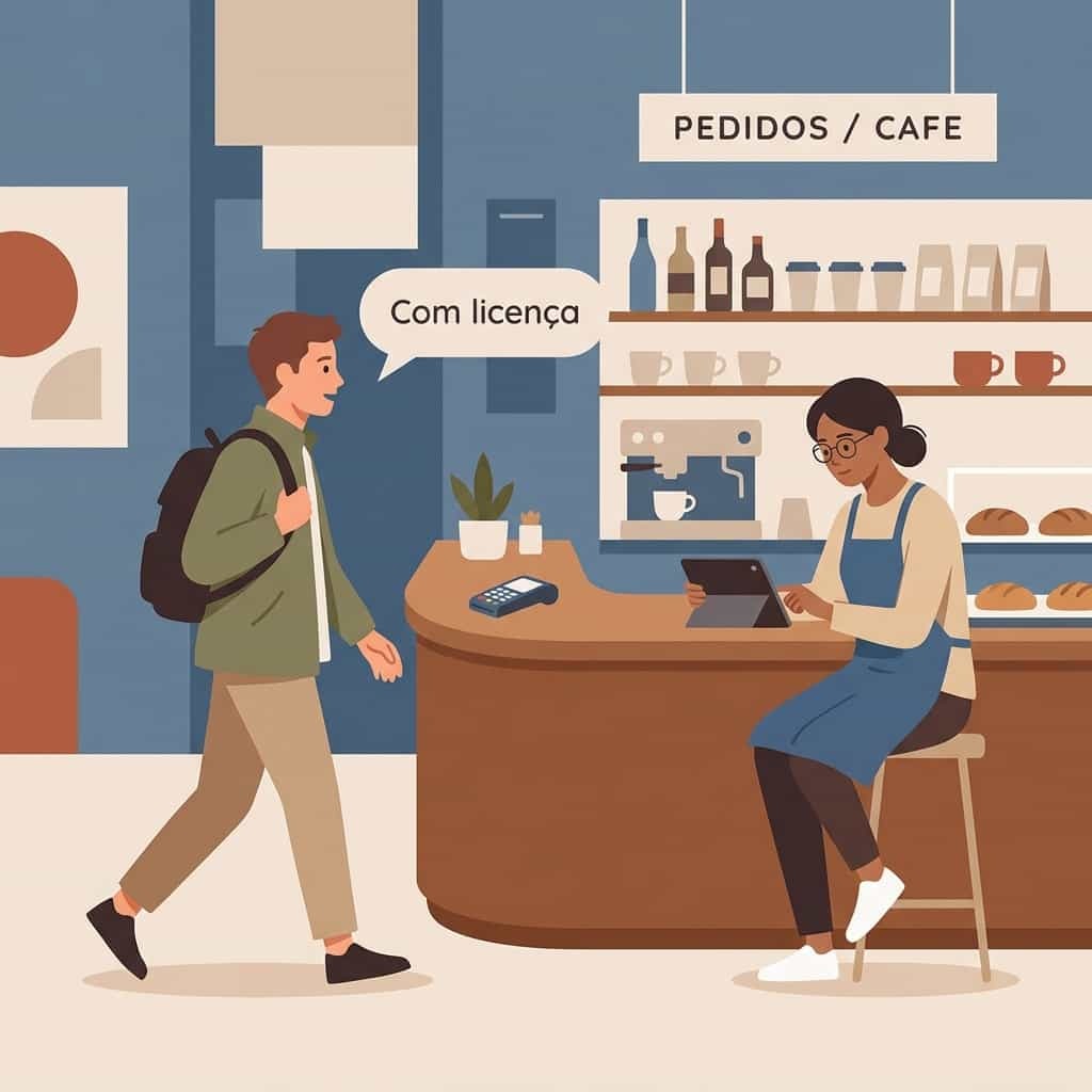 Com licença is the most common and versatile way to say “excuse me.” It literally means “with permission” and is used when you need to pass by someone, interrupt politely, or get someone’s attention.