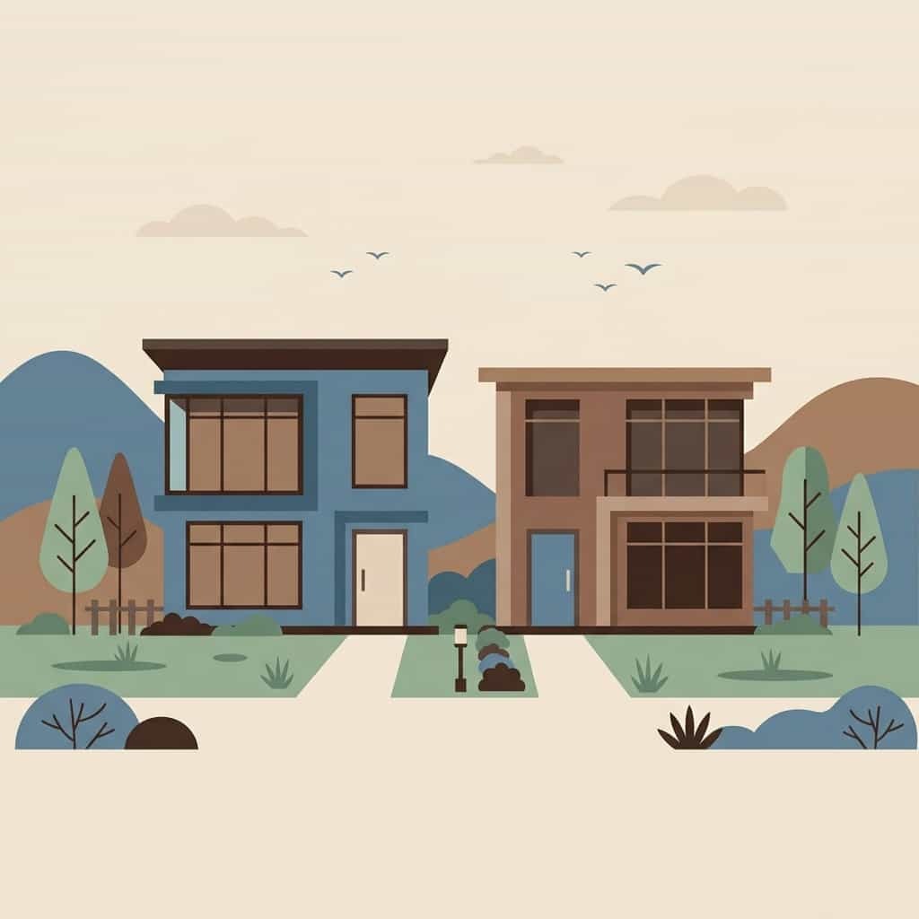 Nossas is used here because casas is a feminine plural word in Portuguese. We always choose nosso / nossa based on the noun, not the owner.