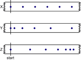 Which ticker tape shows an object which is decelerating?