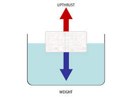 Up thrust is created when an object displaces a fluid, such as a boat displacing water.