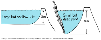The dam on the right. It has a greater depth (h) and so the pressure on the dam will be greater.