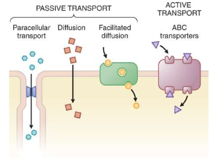 -passive transport (simple diffusion) (most important)