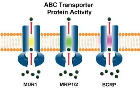 -all are “ATP-binding cassette” (ABC proteins); major families are the multi-drug resistance proteins (MDRs and MRPs) and breast cancer resistance protein (BCRP)