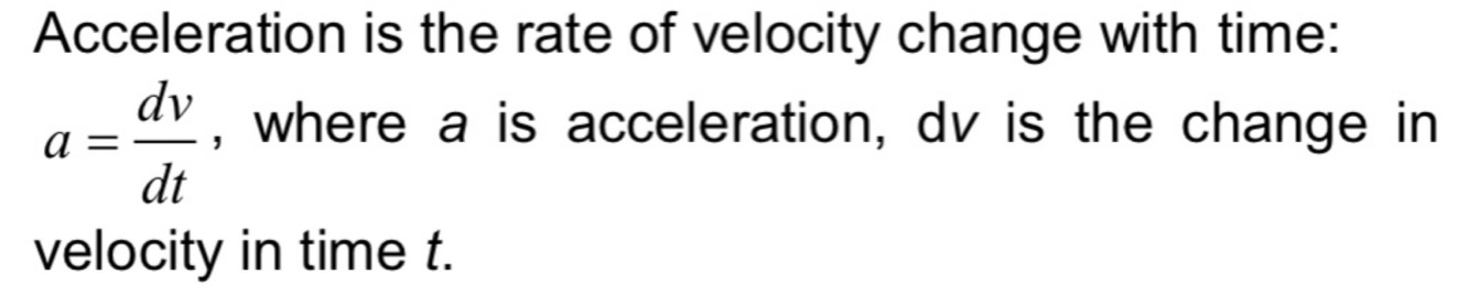 Define acceleration in words and with a formula.