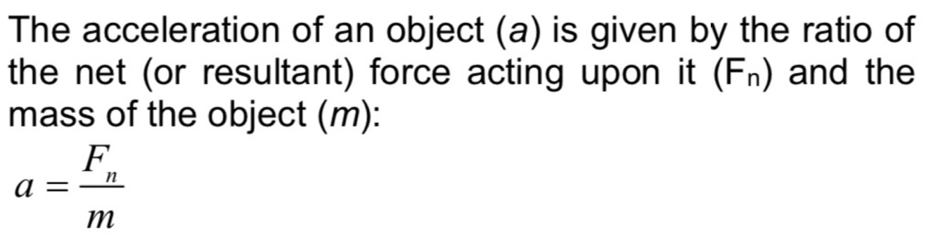 Define newton’s 2nd law in words with a formula.
