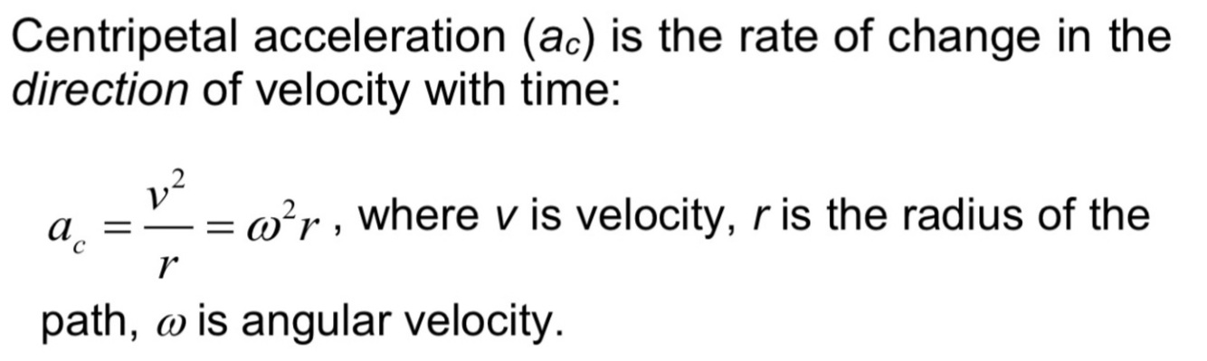 Define centripetal acceleration in words and with a formula.