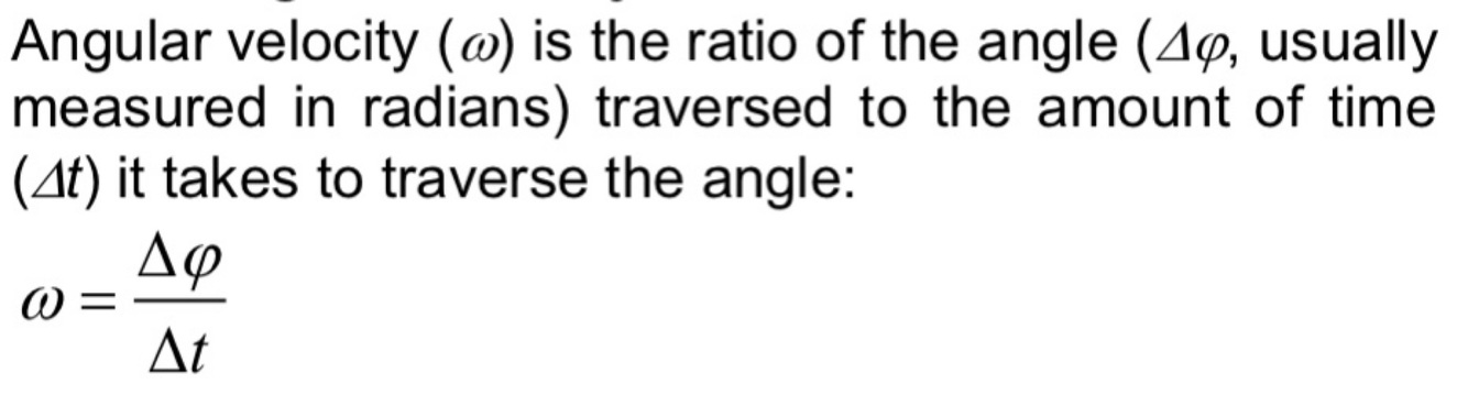 Define angular velocity in words and with a formula.