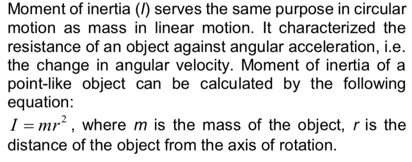 Define moment of inertia in words and with a formula.
