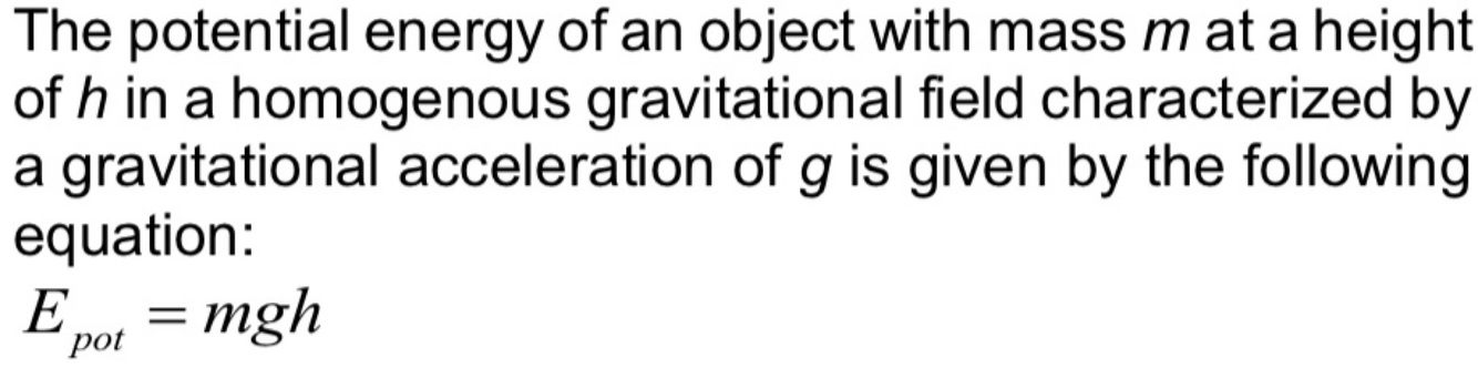 Define the potential energy of an object in a homogenous gravitational field.