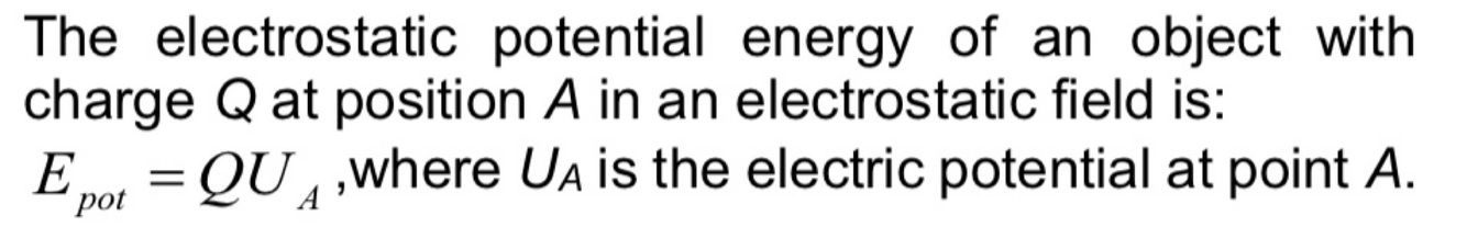 Define the potential energy of a charged object in an electrostatic field