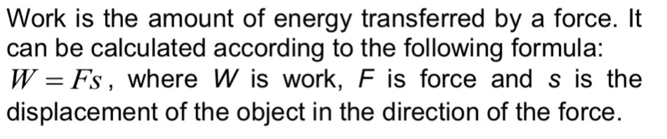 Define work in words and with a formula
