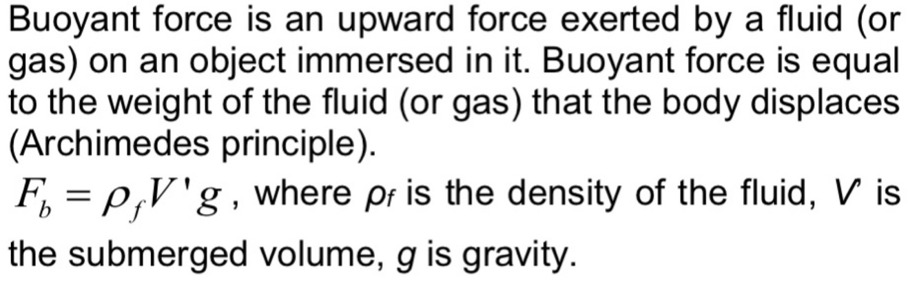Define buoyant force in words and with a formula.