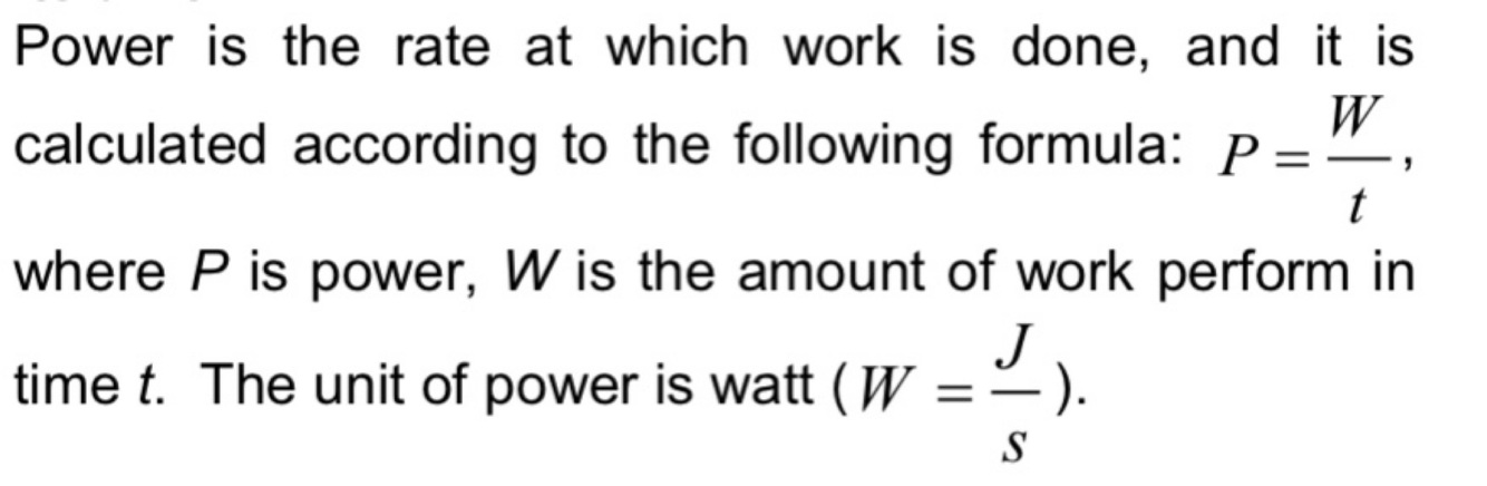 Define power in words and with a formula, and give its unit.