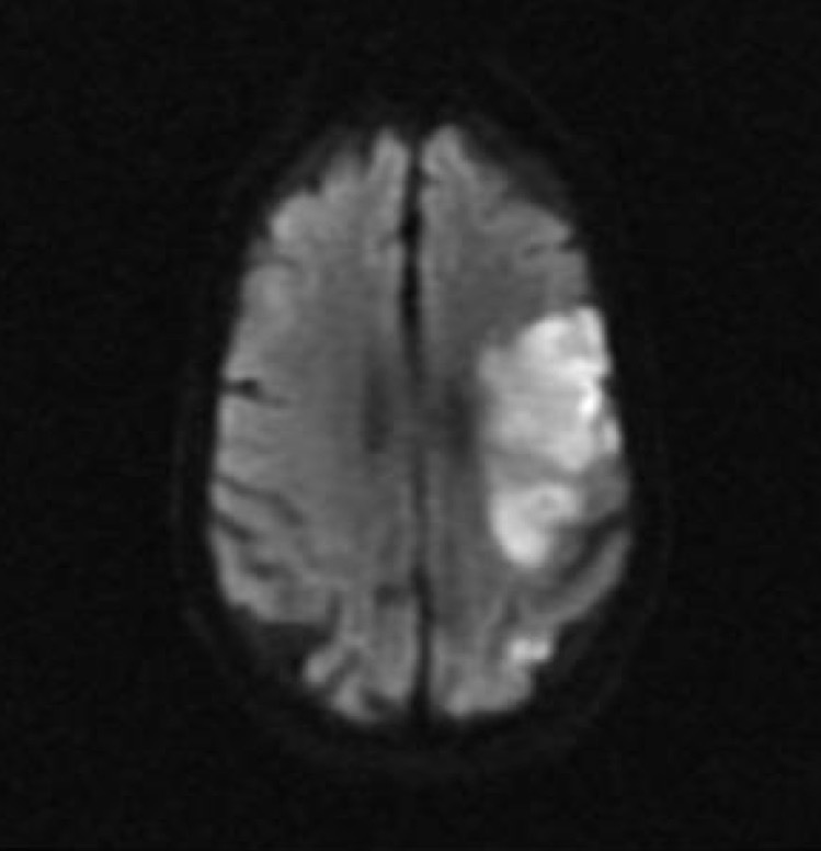 - the Diffusion Weighted Image signal is high