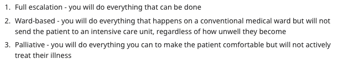 This is because their chances of survival may be very low and subjecting the patient to further painful, undignified interventions for minimal gain in their quality or quantity of life would be unethical