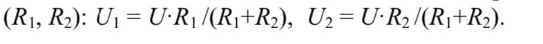 circuit of two resistors connected in series. It divides the input voltage (U ) according to the ratio of the individual resistances