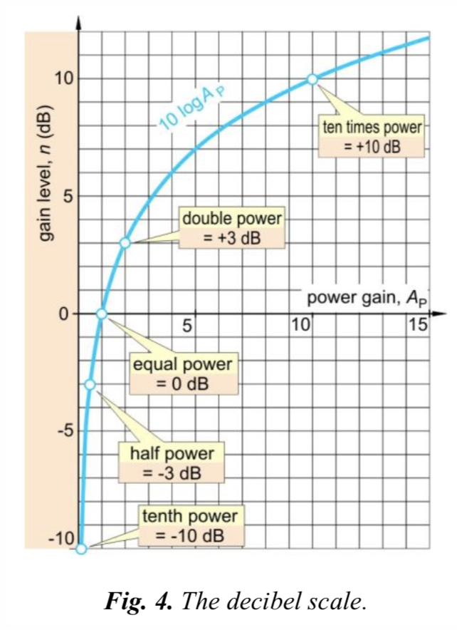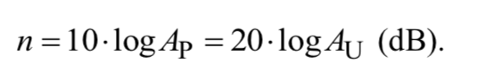 logarithmic unit of the gain level is the bel, but the decibel (one tenth of a bel) is more widely used.