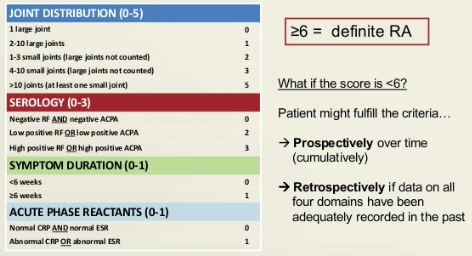 Looks at joint distribution, serology, symptom duration, acute phase reactants