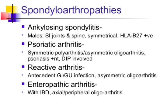 Group of seronegative conditions (RF negative) associated with HLA-B27