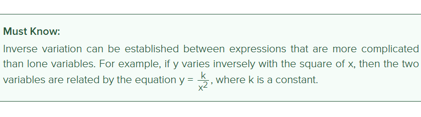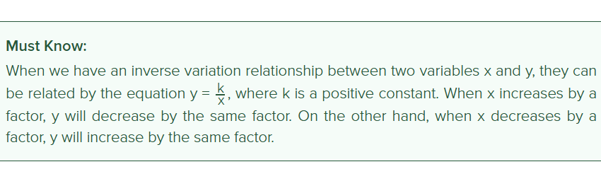 How would you express an inverse variation relationship?