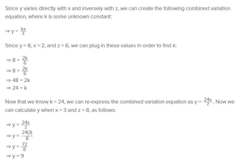 “y varies directly jointly with x and z”