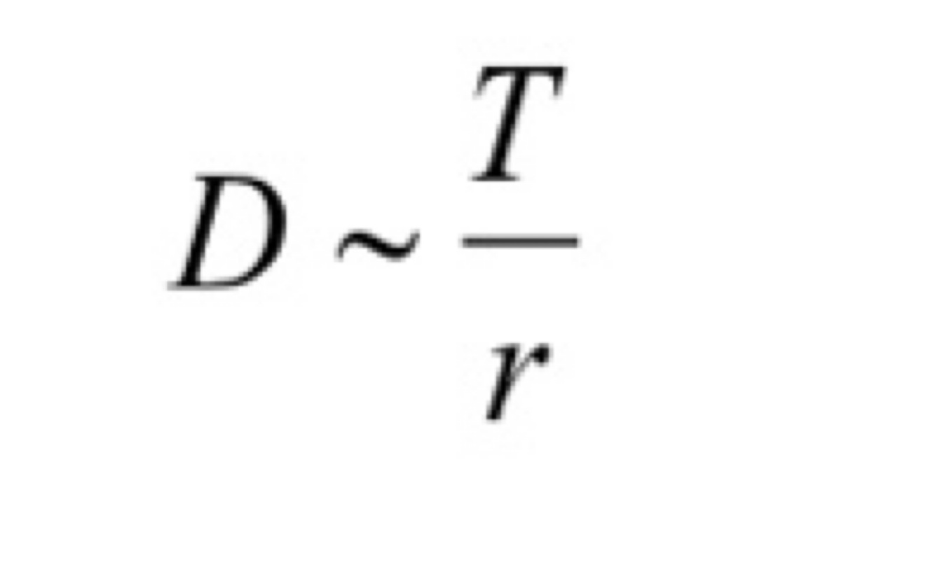Write down the equation describing the relationship between the diffusion constant (D) and the form factor (f).