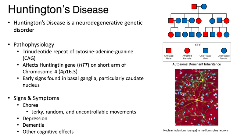 Expansion of CAG repeats on Chromosome 4 (over 38 repeats)