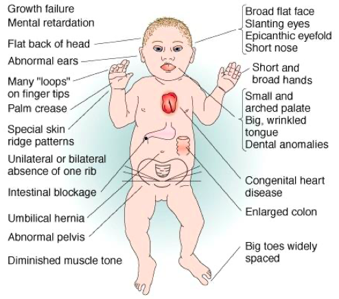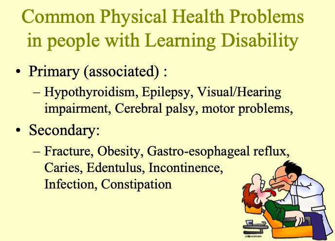 What are some physical health problems that a person with Downs Syndrome is more at risk of?