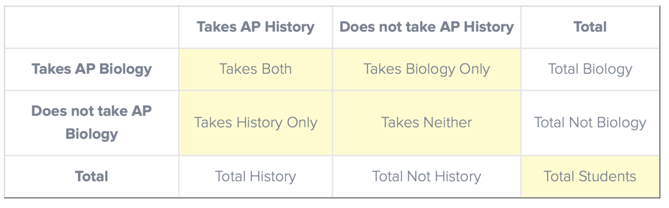 Out of 50 students in a 10th grade class, 20 students take AP history and 32 take AP Biology. If 12 students take neither class, how many students take both classes?