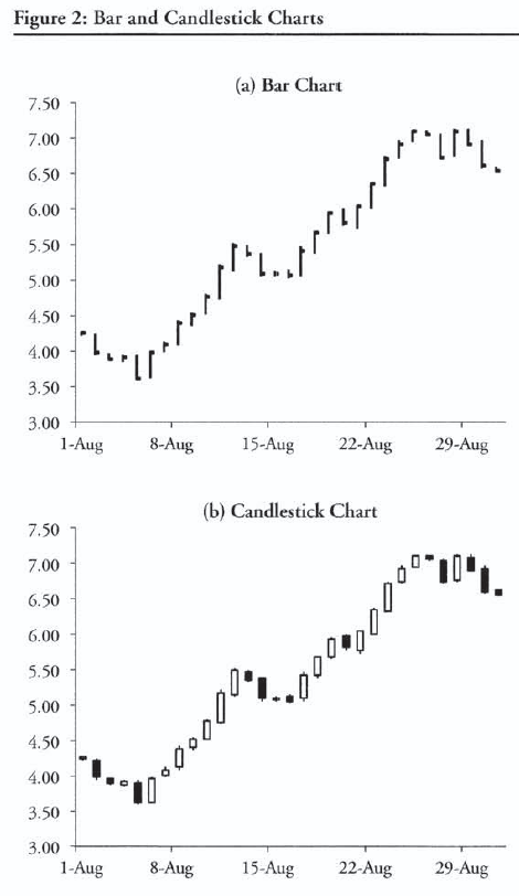 LOS 13. b: Describe the construction of different types of technical analysis charts and interpret them. Define bar charts and candlestick charts.