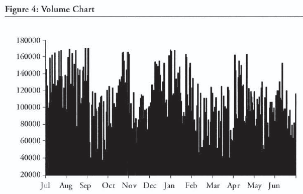 LOS 13. b: Describe the construction of different types of technical analysis charts and interpret them. Define volume chart.