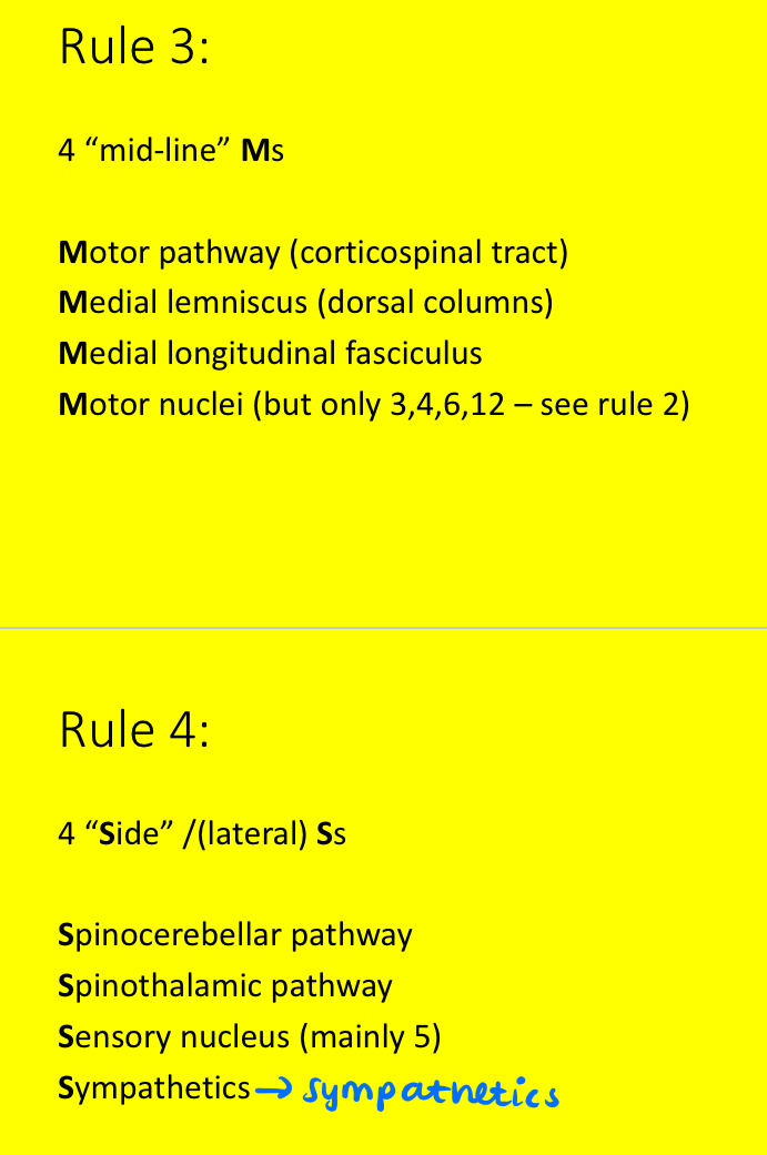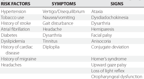 POCS: one of the following… CN palsy with contralater motor/sensory deficit, bilateral motor/sensory deficit, conjugate eye movement disorder, cerebellar dysfunction, homonymous hemianopia with macular sparing