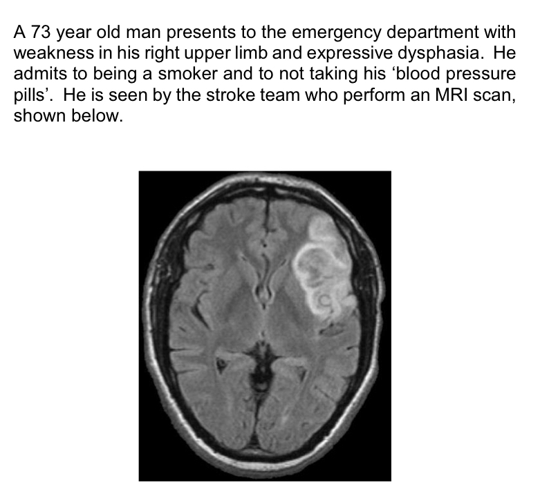 - Other (5%): dissection, venous sinus thrombosis (occlusion of veins causes backpressure and ischaemia due to reduced blood flow), hypoxic brain injury (e.g after MI)