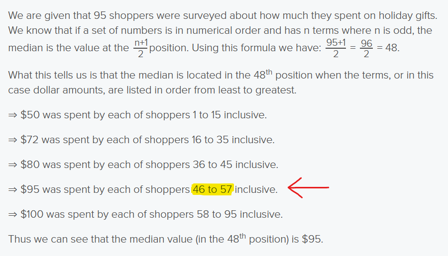 This is the PLACE of the median, NOT the median itself!