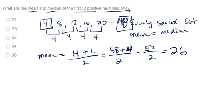 In an evenly spaced set, the mean of the set is equal to the MEDIAN OF THE SET
