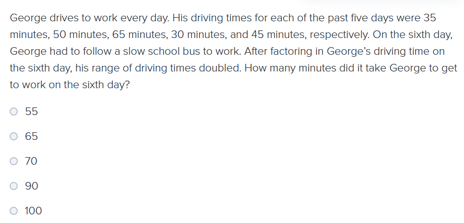 So Lowest value + 70 = highest value,