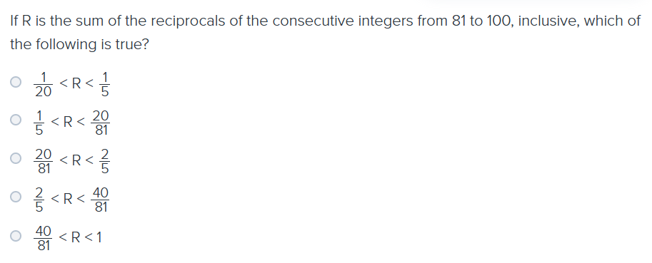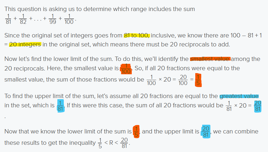 How would you calculate the range of the sum of reciprocals of integers (fractions)?