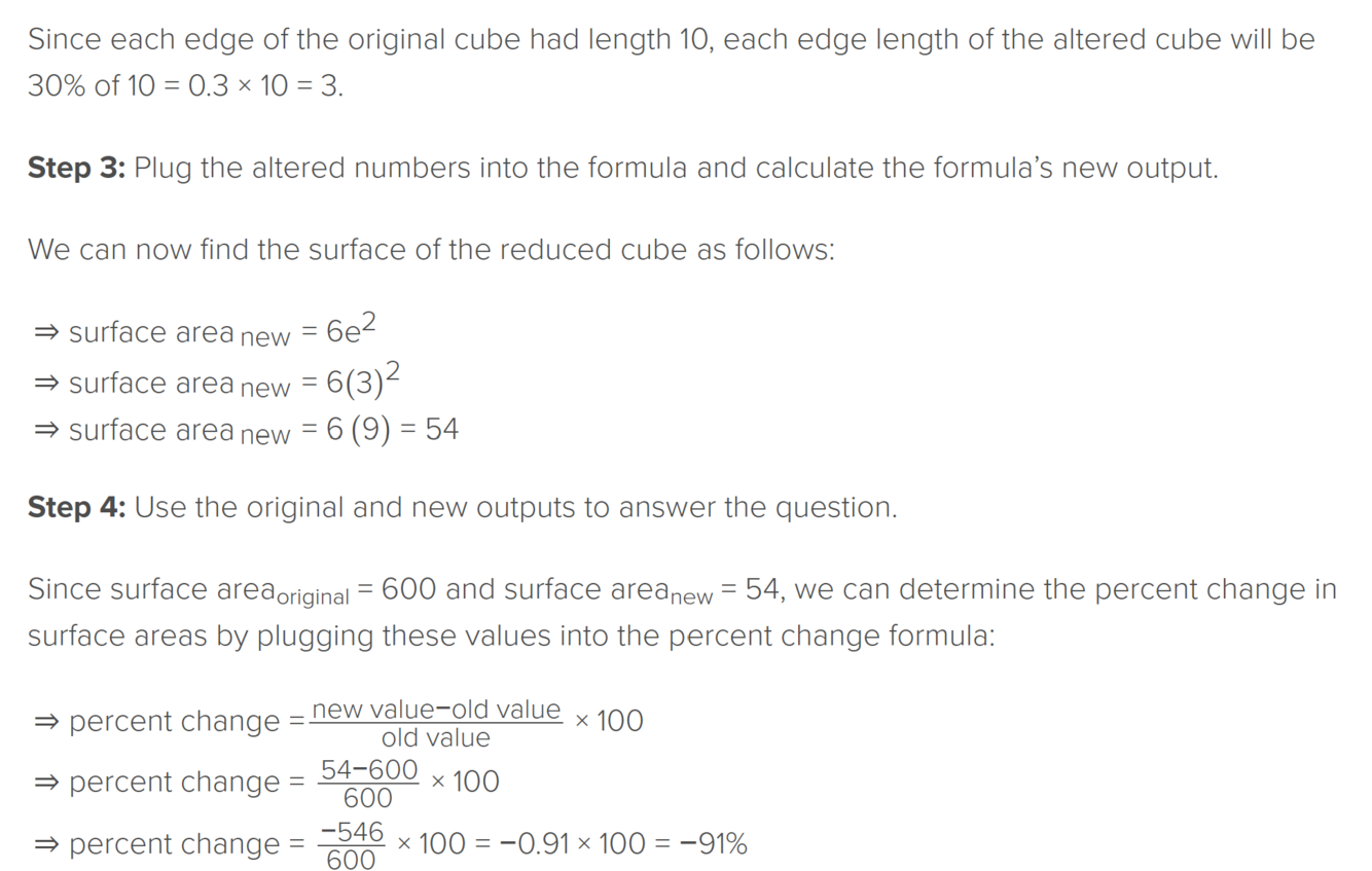 The GMAT provides a formula and some hypothetical change to one or more of the measurements. They require you to logically analyze a change made to the formula.