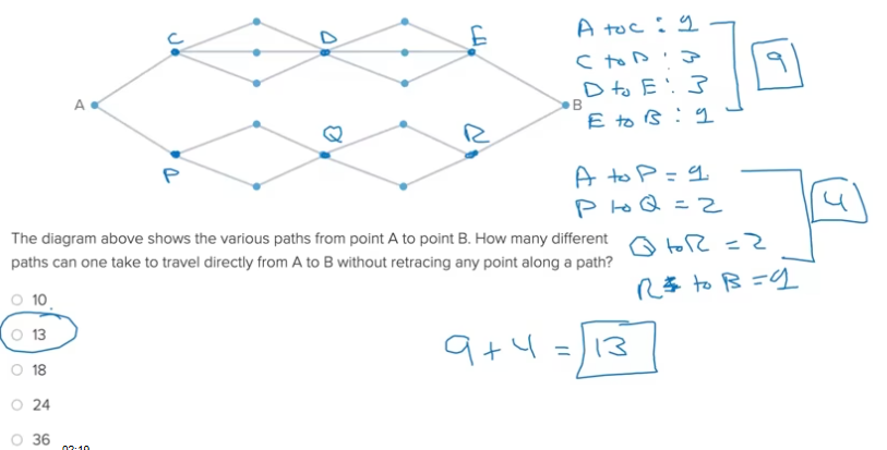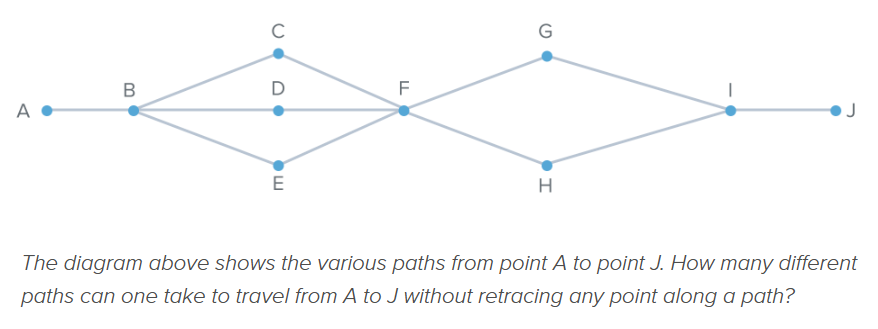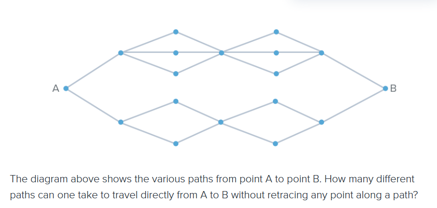Need us to determine the total number of different paths one can take to travel from starting point to some destination