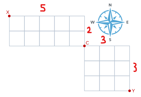 Understand that in whatever way you travel, you have to go South 4 times, and East 3 times.