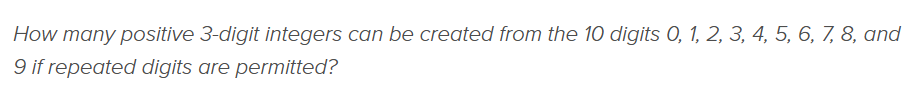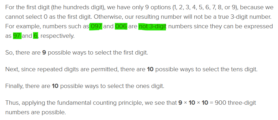 Remember that the first digit (hundreds digit) can NOT be 0