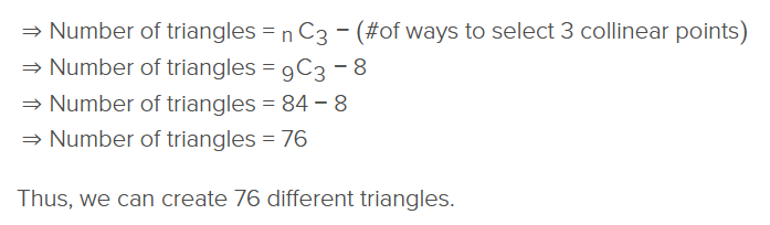 If there are “n” points on a plane such that no three points are collinear, then we can create a triangle in….