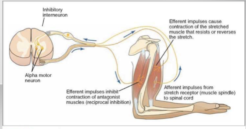 Reciprocal inhibition: skeletal muscles typically function in pairs for maximal muscle effifiency, speed, and control.