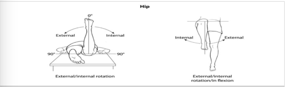 Do the motions for external and internal rotation of the hips when they are extended and when they are flexed.