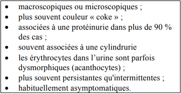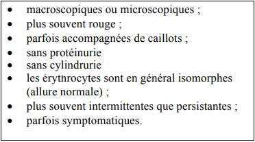 Hématurie glomérulaire souvent isolée