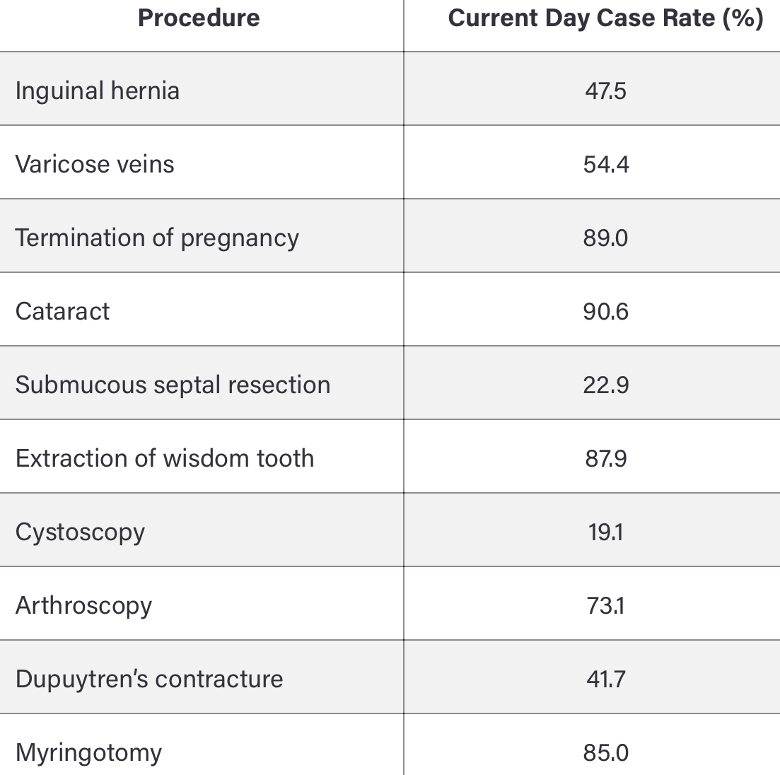 What procedures are considered for day case surgery and what are the advantages of day case?