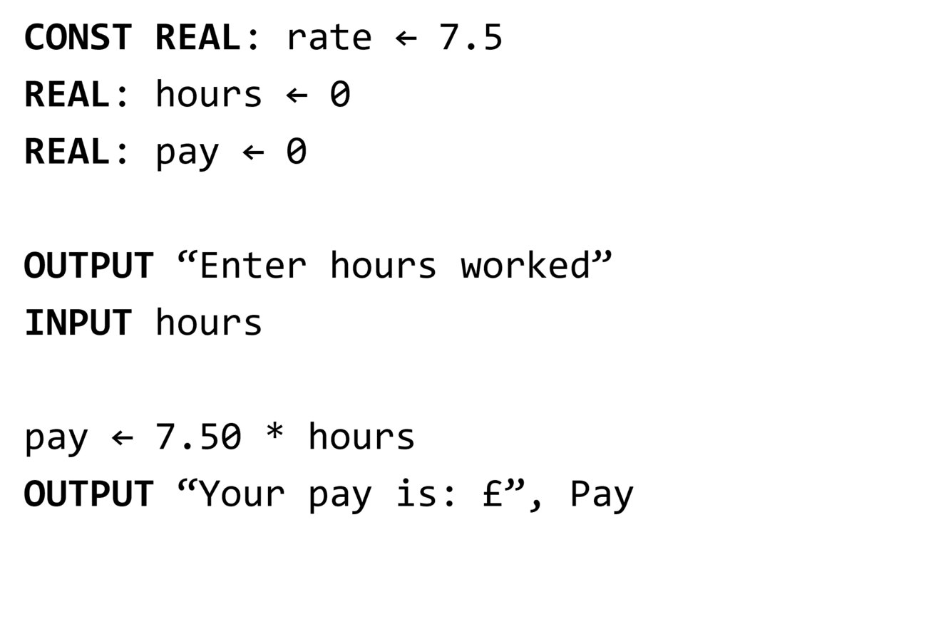 Can be expressed using pseudocode or a flowchart