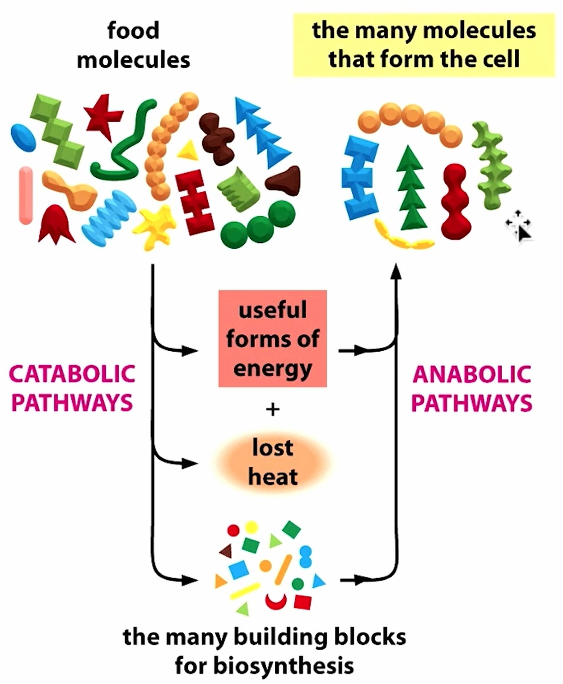 Catabolism is the process of breaking down larger molecules into useful energy sources.
