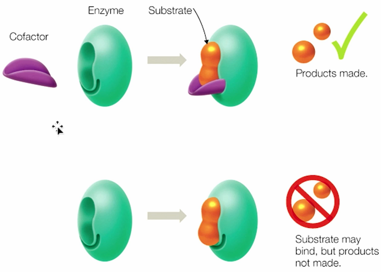 A Cofactor is a small chemical component, usually metal ions, that assist enzymes during the catalysis reactions.
