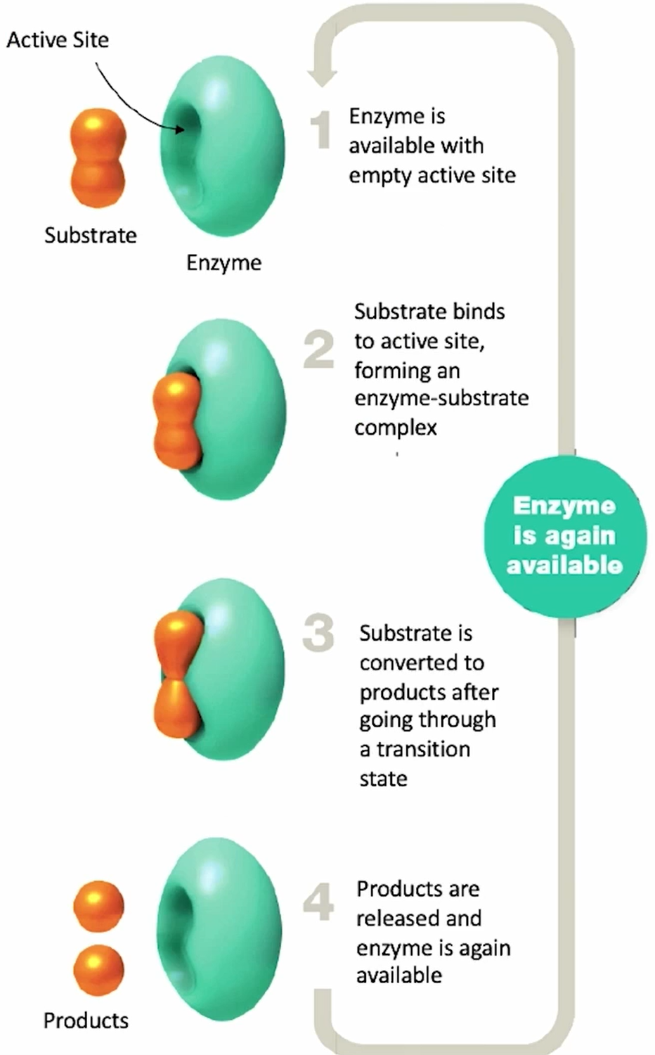 TRUE or FALSE: The enzyme is not consumed during the reaction and can be used repeatedly by the cell